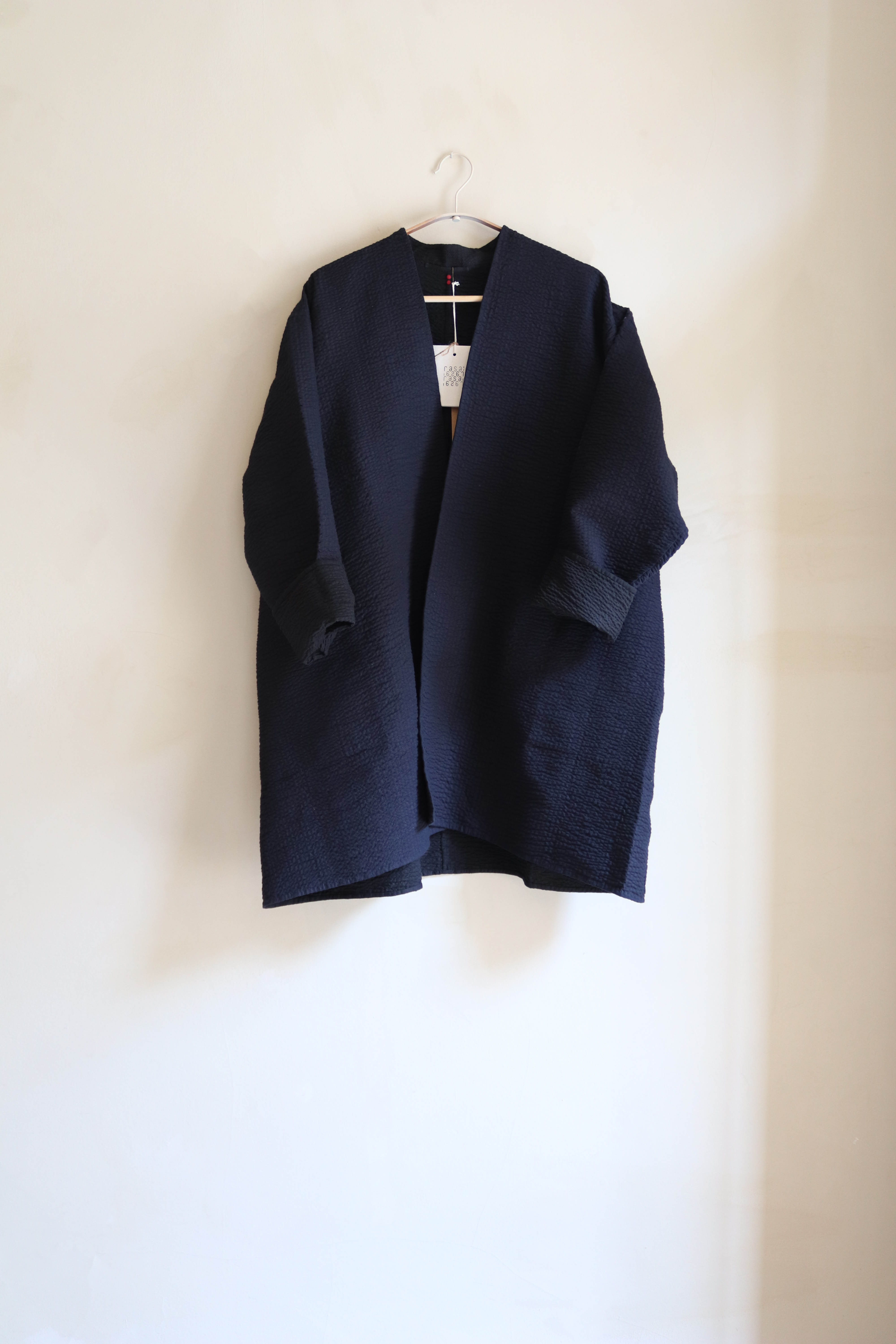JACKET KHADI NAVY, STRIPE REVERSIBLE