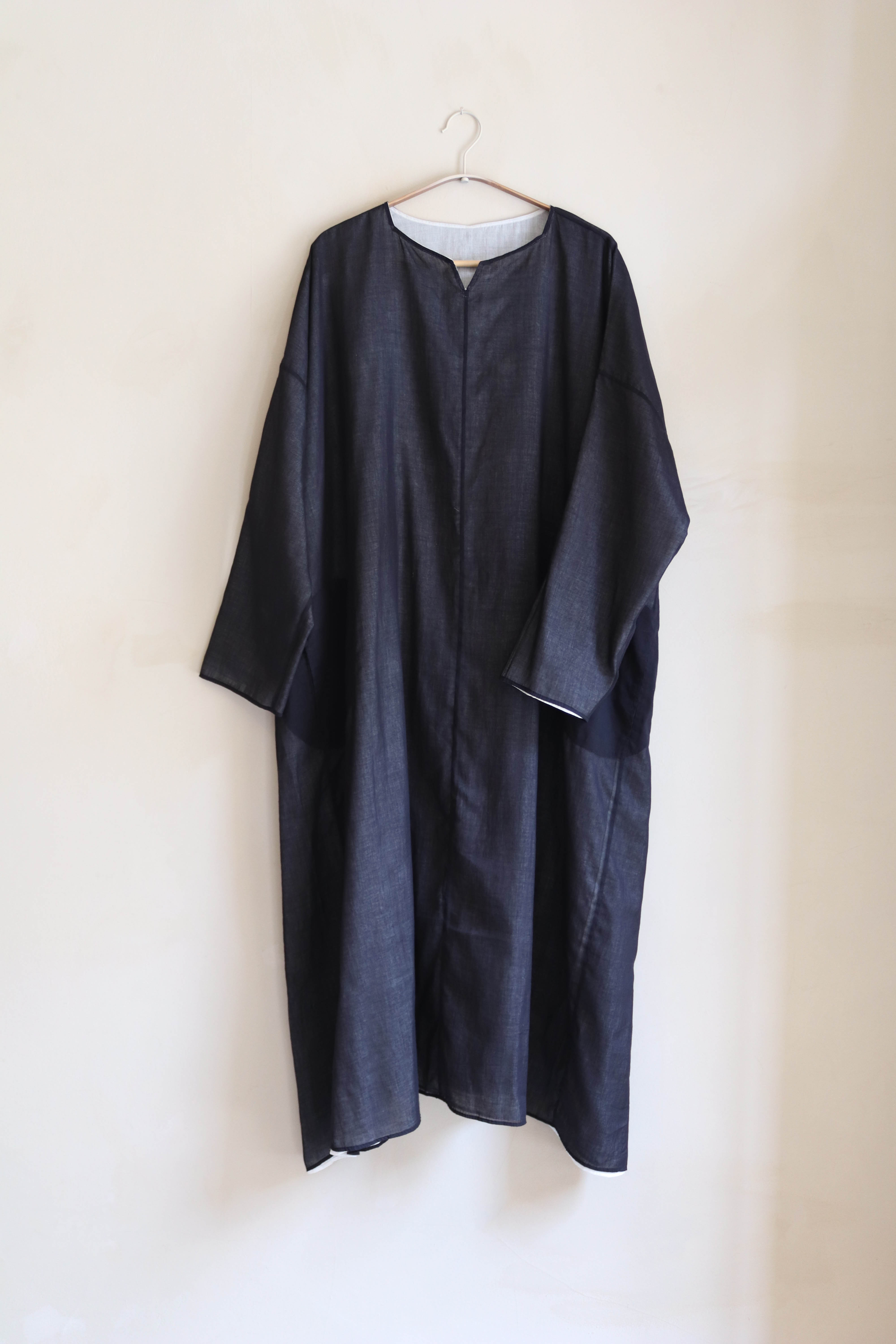 FINE MULMUL COTTON COMBINED WITH KHADI COTTON WITH CIRCLE INLAY, AND CIRCLED POCKETS.