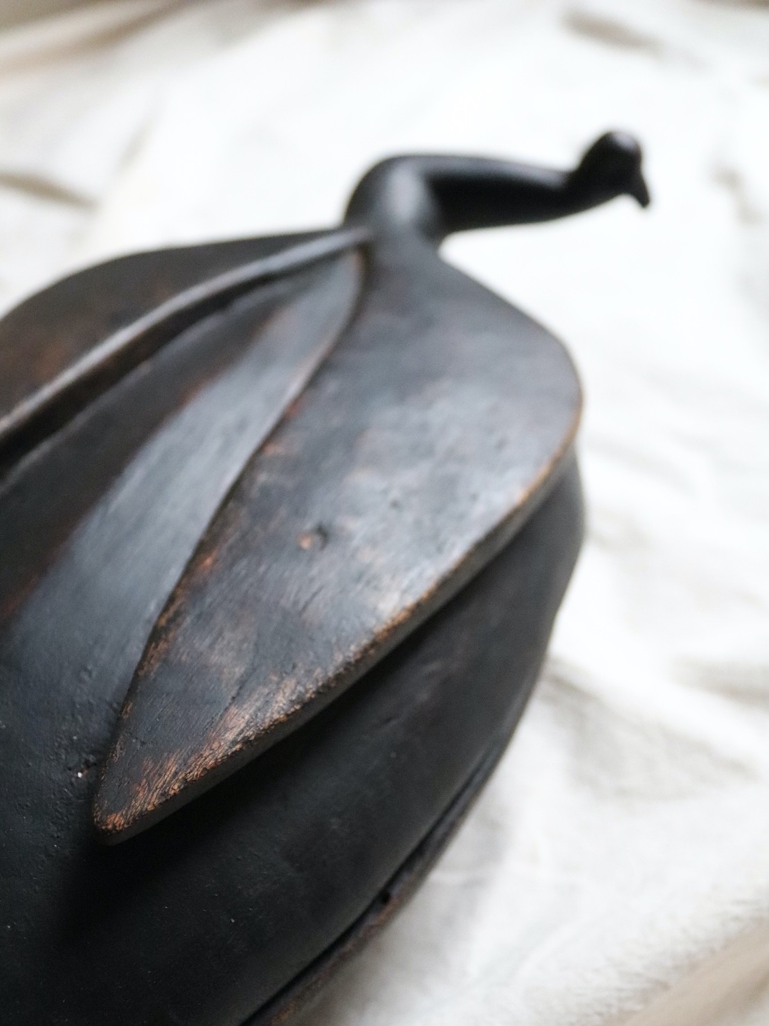 An old wooden lidded bowl made by the Lozi people.The Lozi People primarily occupy the floodplain region of the Zambezi River in Zambia.