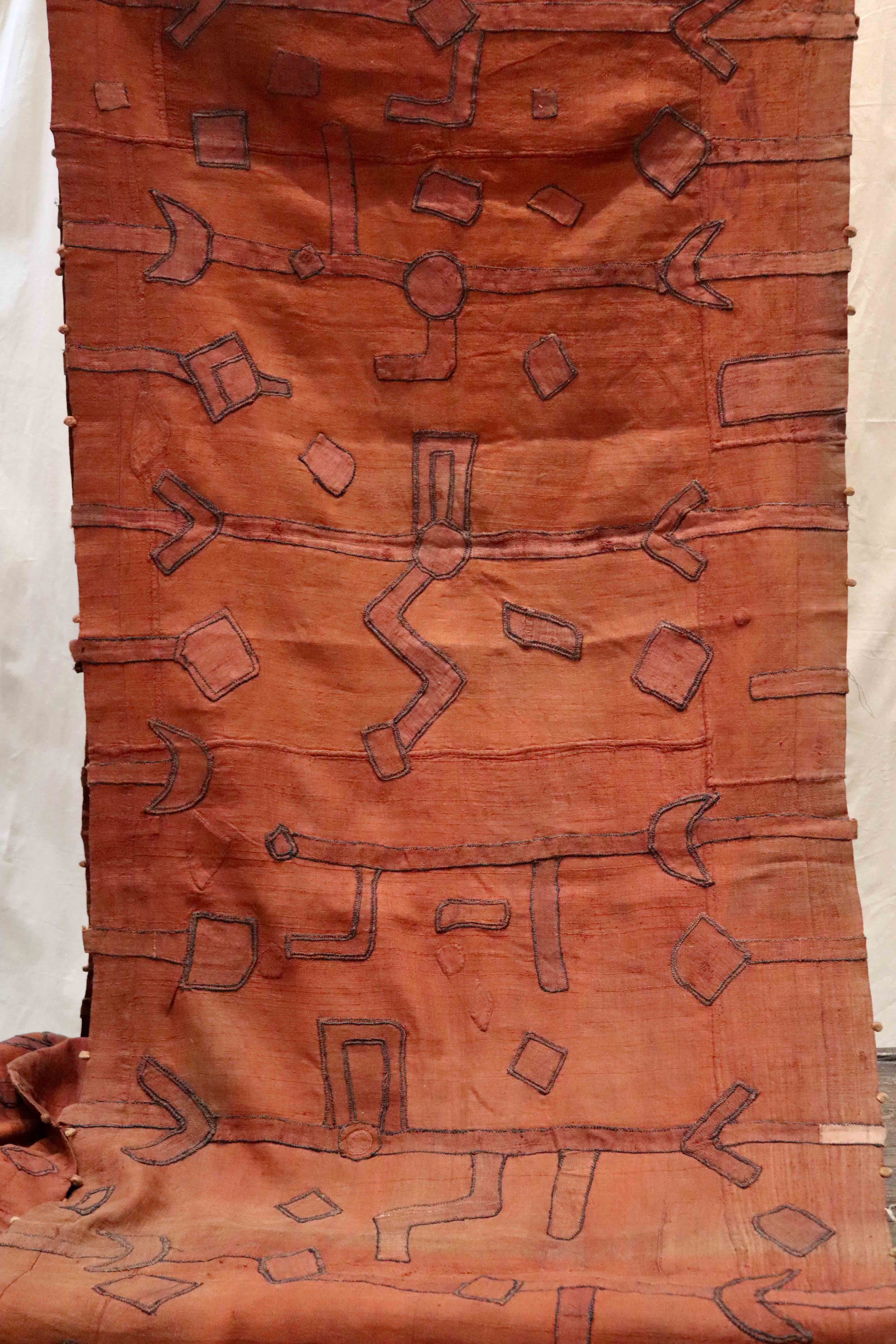 The finished cloths are worn as overskirts, called ntshack when worn by women and mapel when worn by men. These garments are draped around the waist over a longer underskirt and secured with a belt. They are typically worn during important ceremonies and dances. At funerals, raffia cloths carry a profound significance as they symbolize security and continuity, connecting the living with each other and with the deceased. Chiefs may also commission these cloths for specific ceremonial purposes, and the most skilled weavers may be employed for up to a year to produce these elaborate textiles.