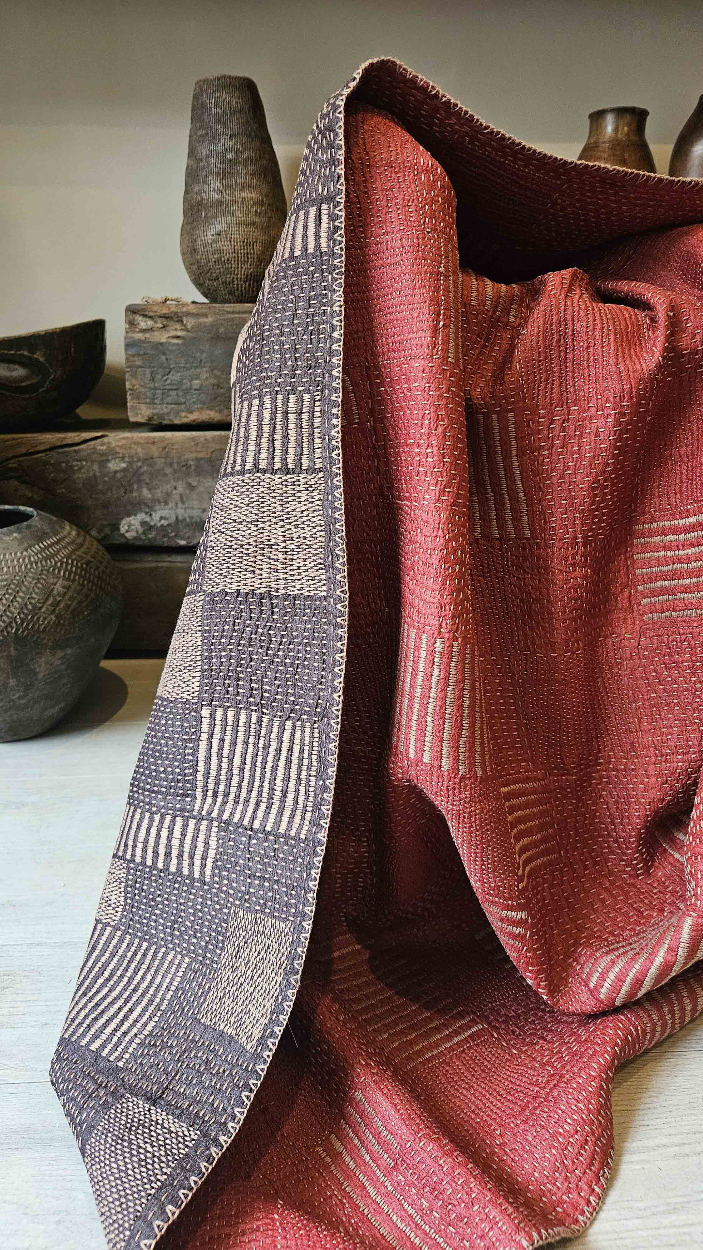 DOUBLE SIDED SILK KANTHA THROW