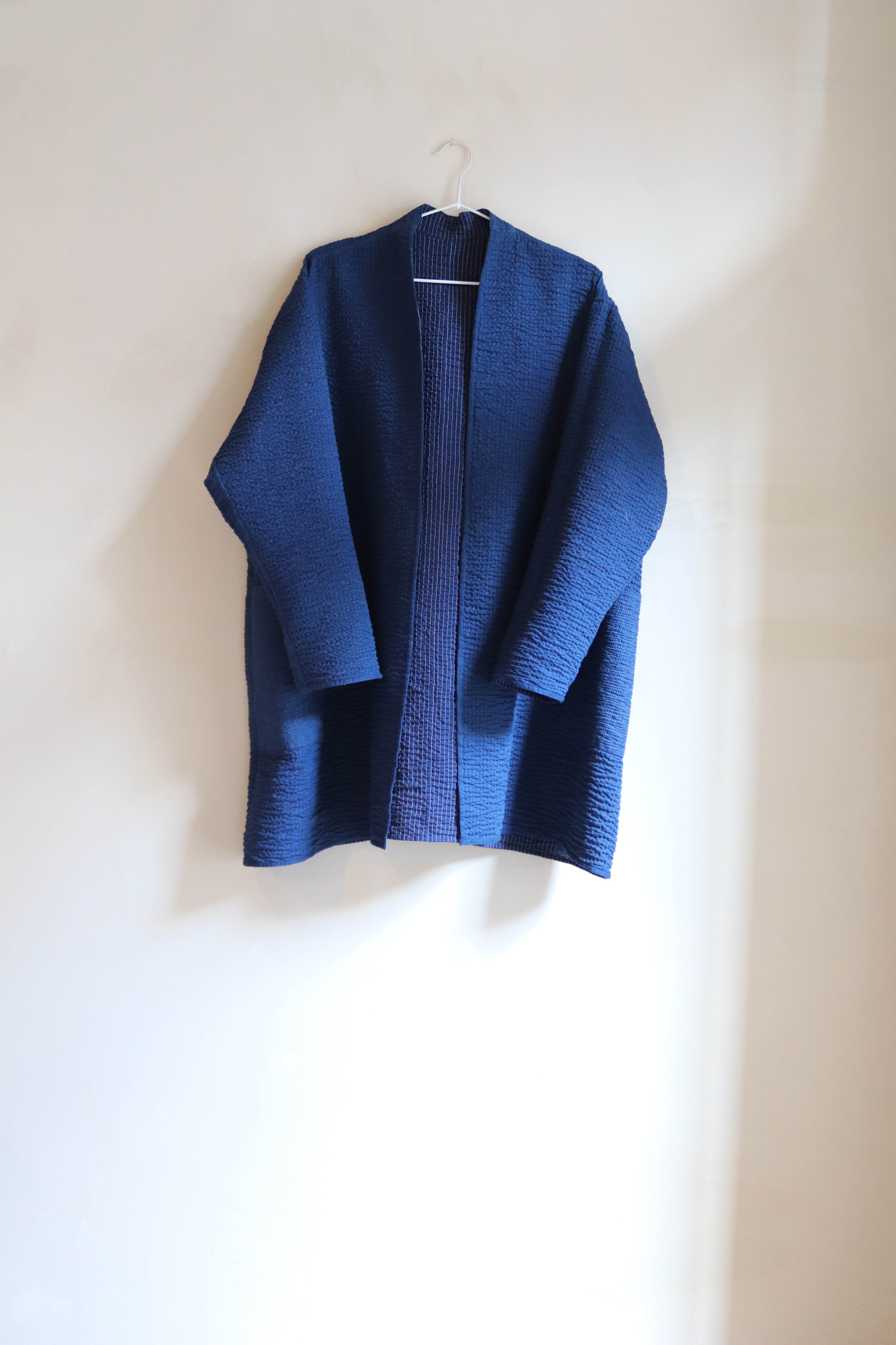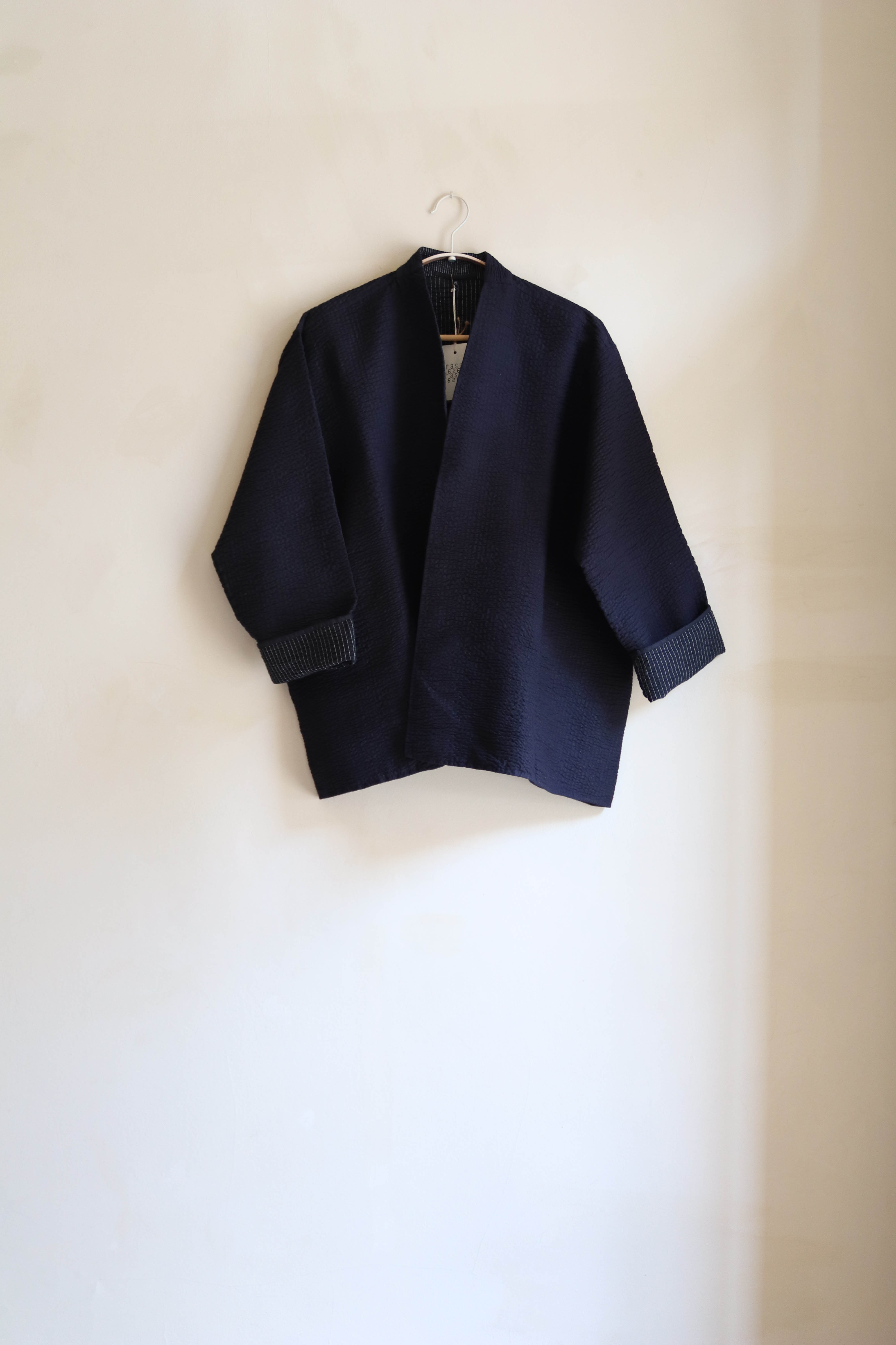 JACKET KHADI NAVY, STRIPE REVERSIBLE