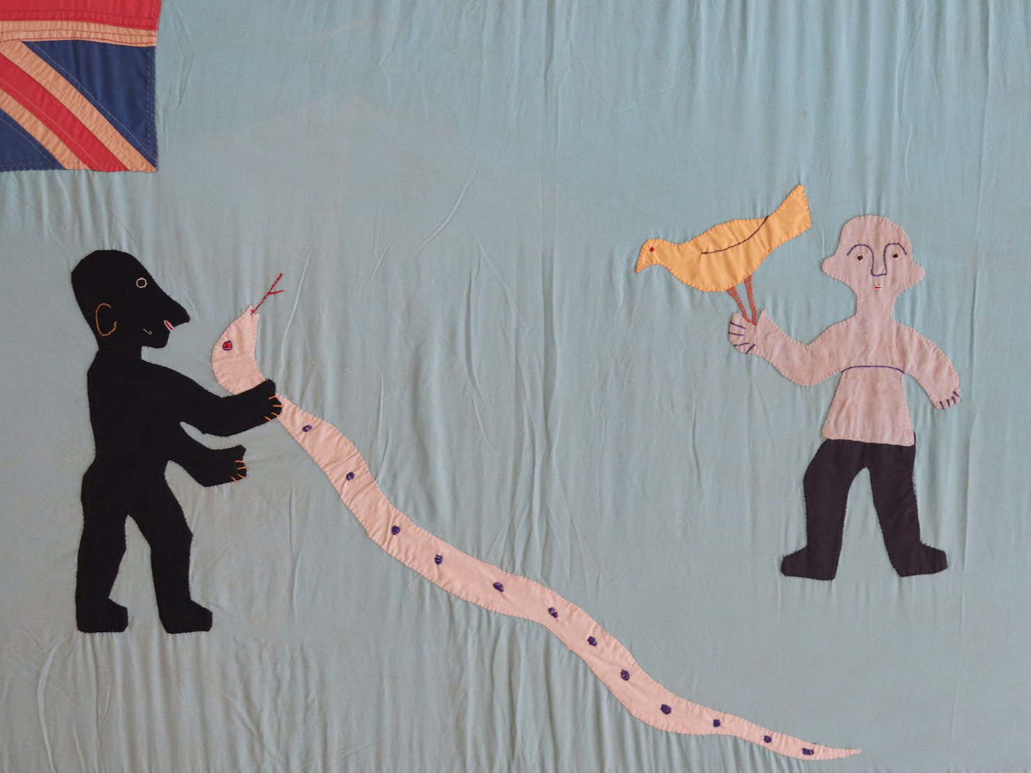 Asafo Fante flags are insignia for the historical and still-thriving military companies of the Fante states in southern Ghana. They are created by various workshops that are still active in the region and are paraded by companies to celebrate their strength and preserve the memory of their role as community defenders.