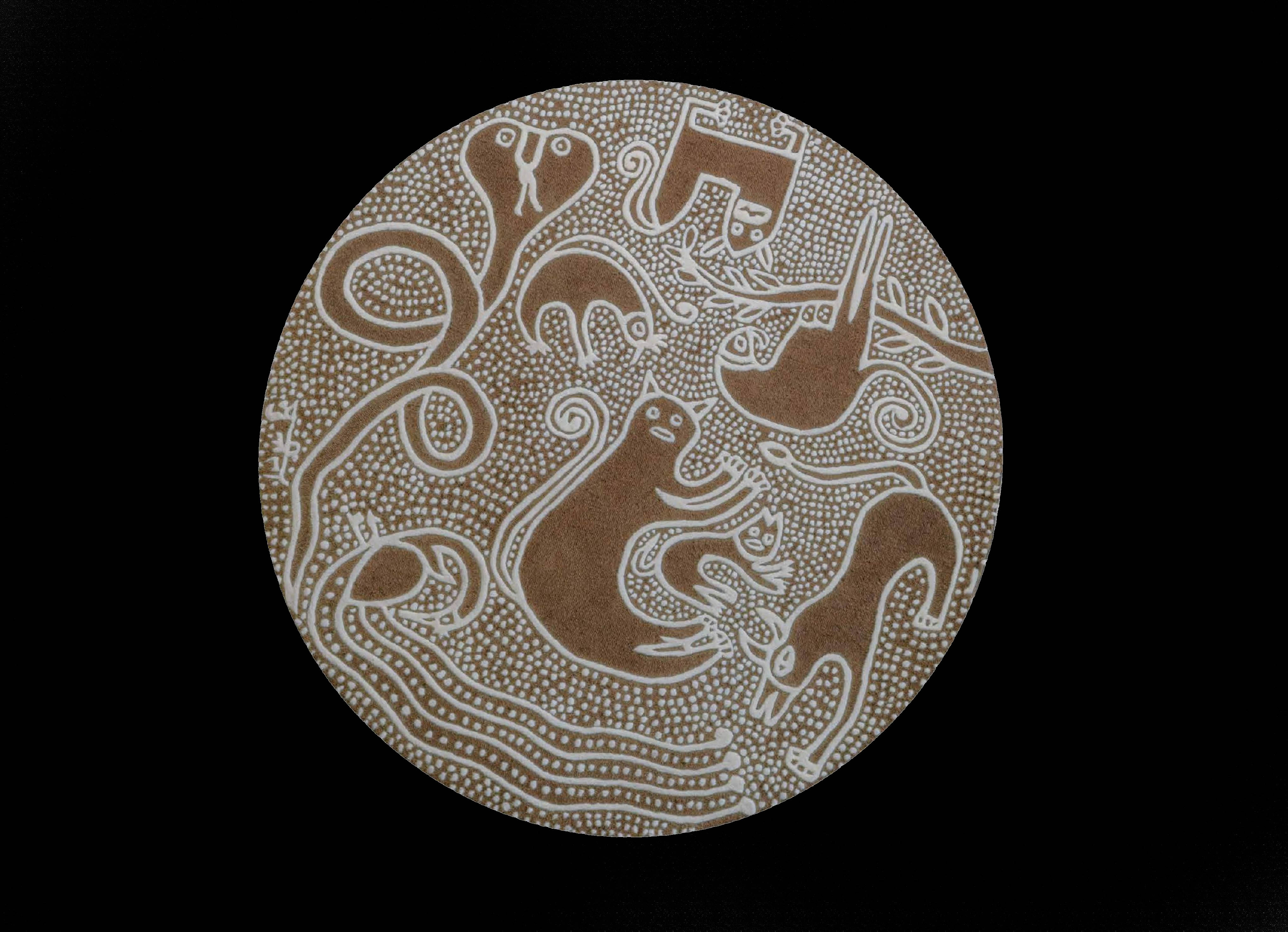 Using alabaster clay or 'Khadia Mitti' images are rendered directly onto mud wall surfaces with fingers as the artmaking tool. She now lives and works in Sawai Madhopur with her family near Jaipur.