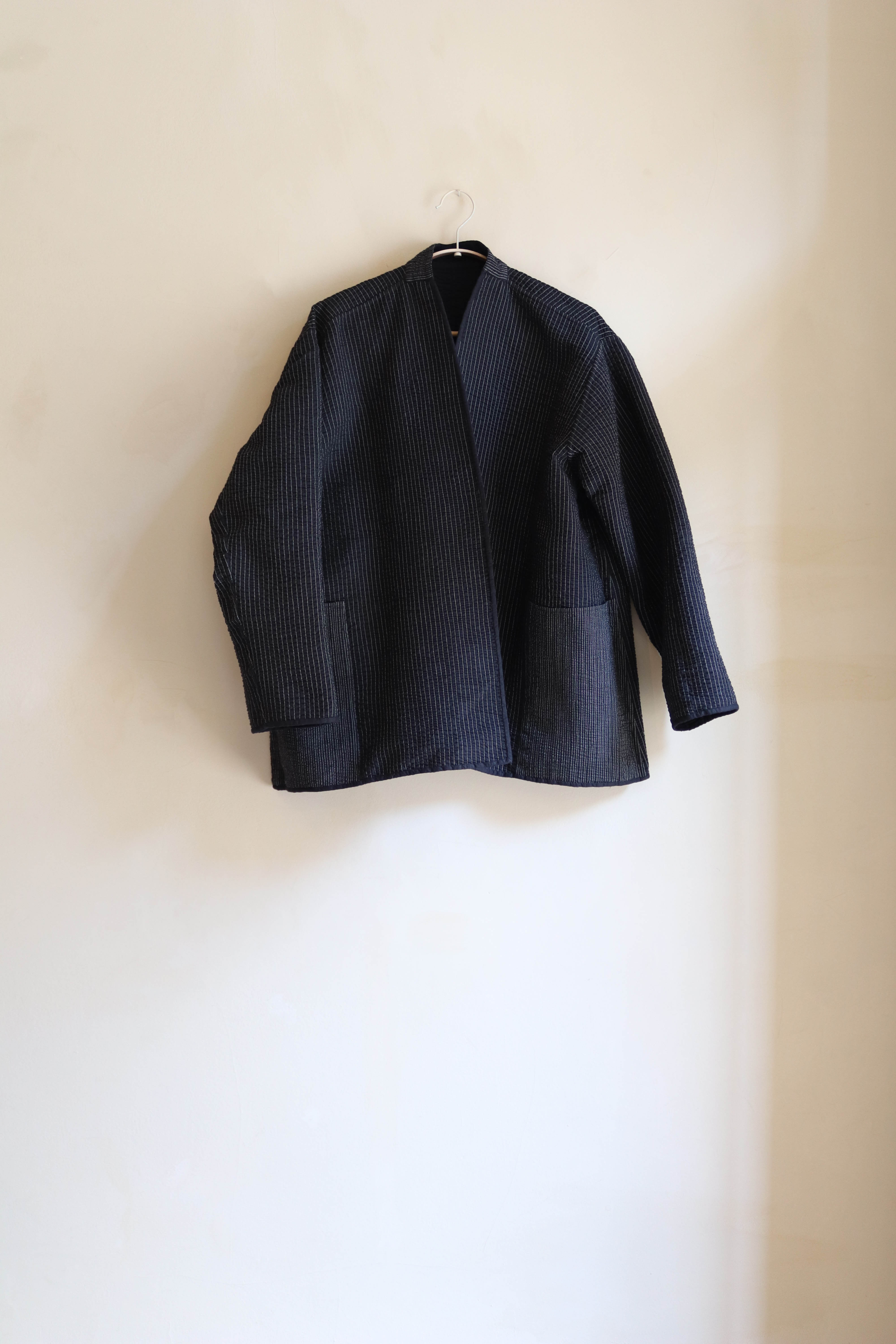 JACKET KHADI NAVY, STRIPE REVERSIBLE