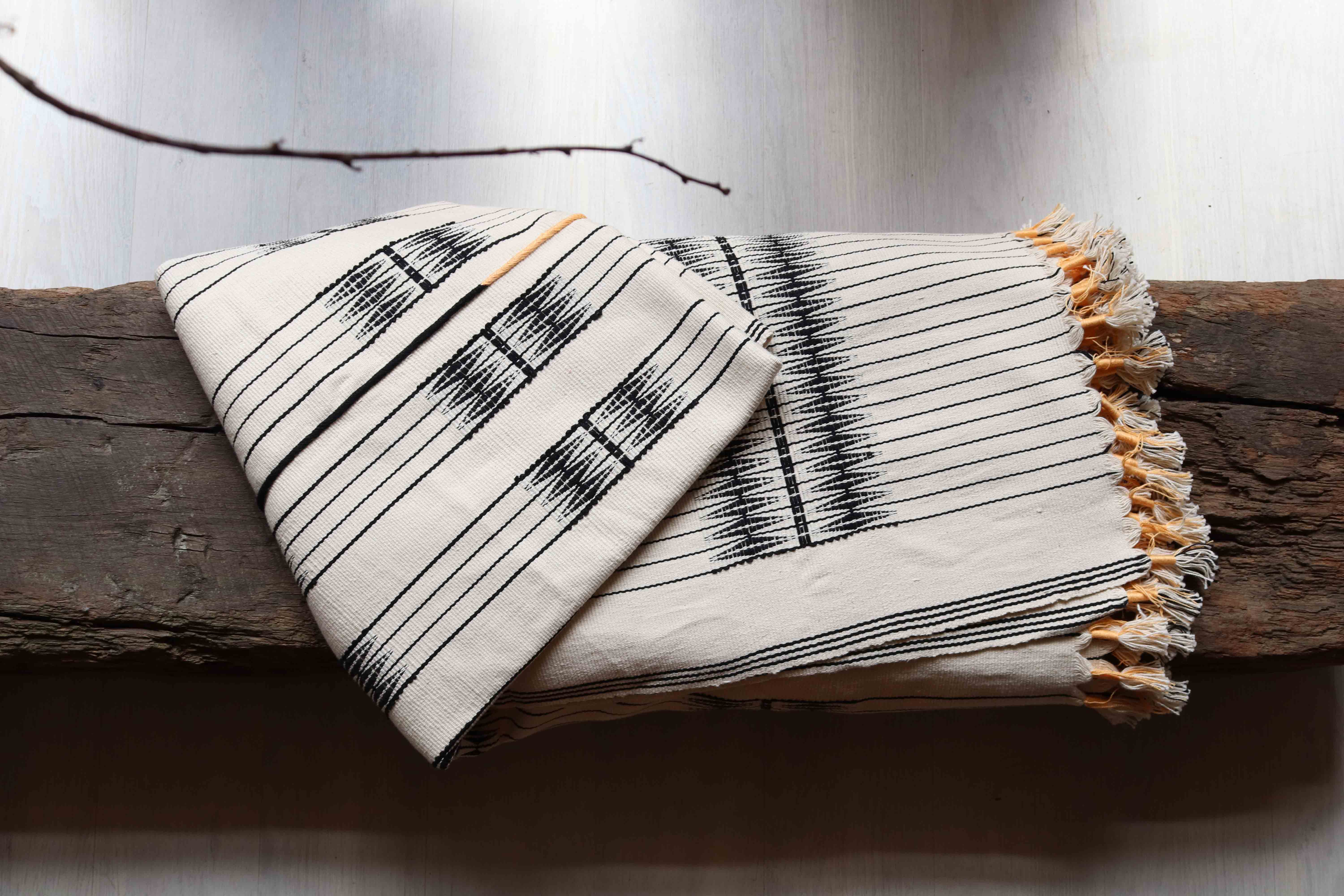 This beautifully textural throw has been handwoven by women artisans in the North Eastern state of Nagaland, home to several indigenous tribal groups with rich craft traditions. Traditional textiles in Nagaland are typically woven on a short-width, back-strap loom also known as a loin loom. Weaving is a part of everyday life for many Naga women, organically included in the schedule of the day. Weaving has also become a source of livelihood for the women, with a growing interest in the textural, short-width Naga weaves which translate beautifully to textiles for the home.