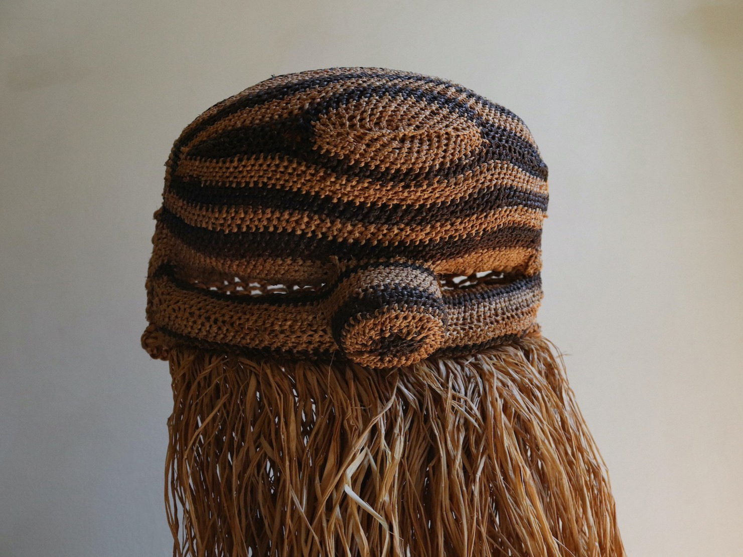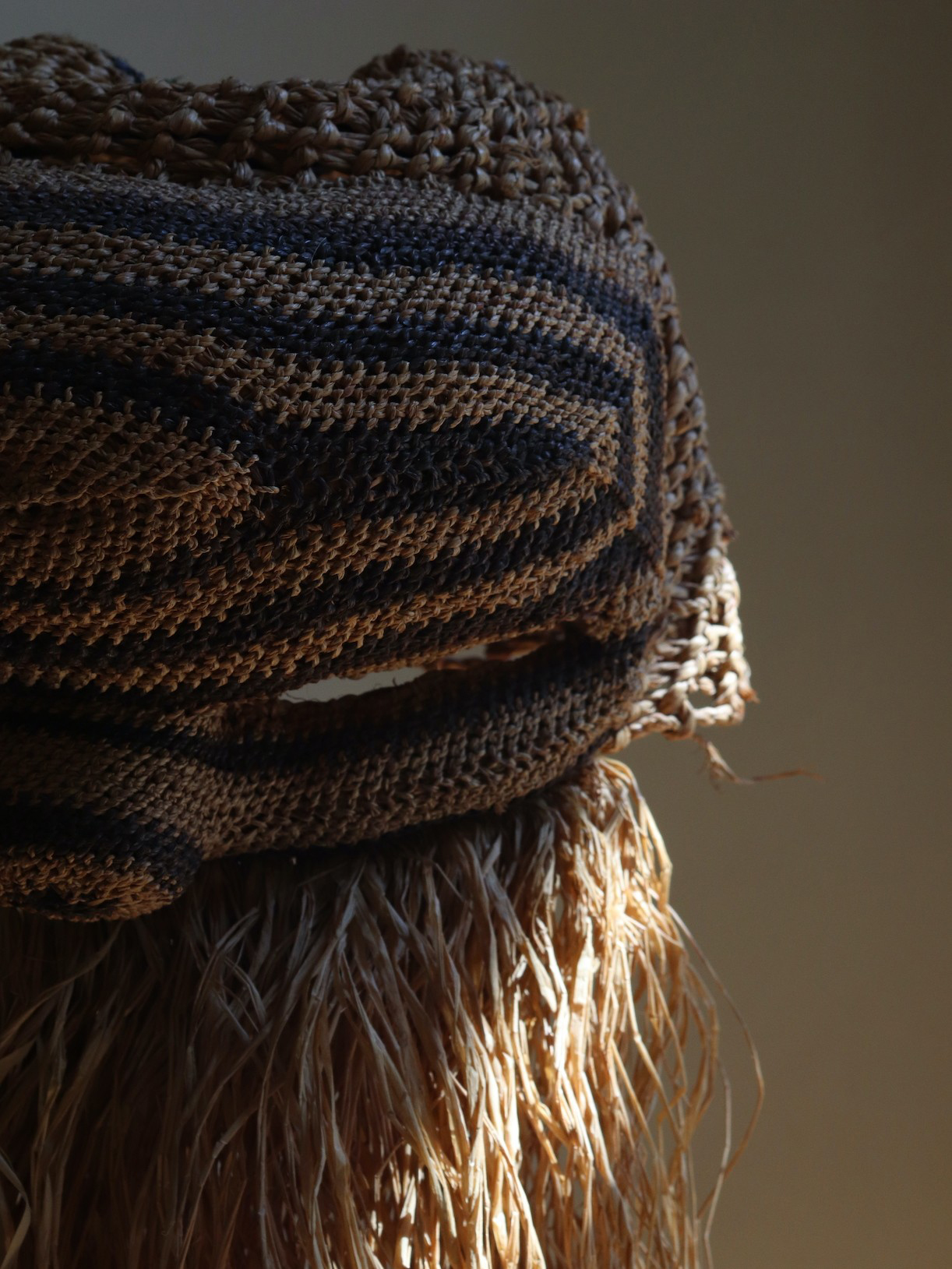 Salampasu masks made of plaited raffia fibre are used by the Idangani association.