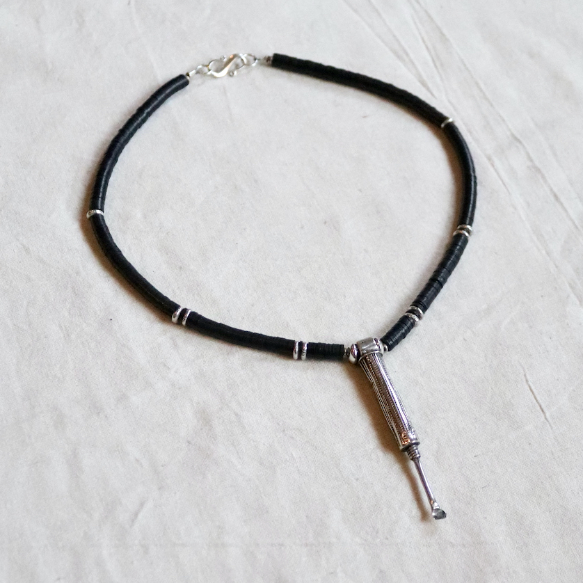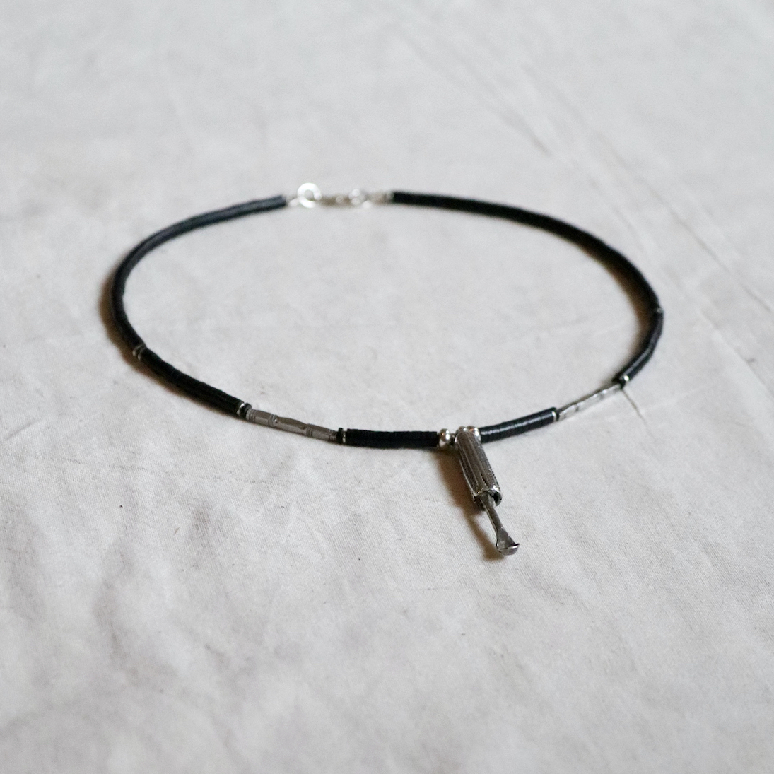ETHIOPIAN SILVER SCOOP, BLACK DISC CORD NECKLACE 1