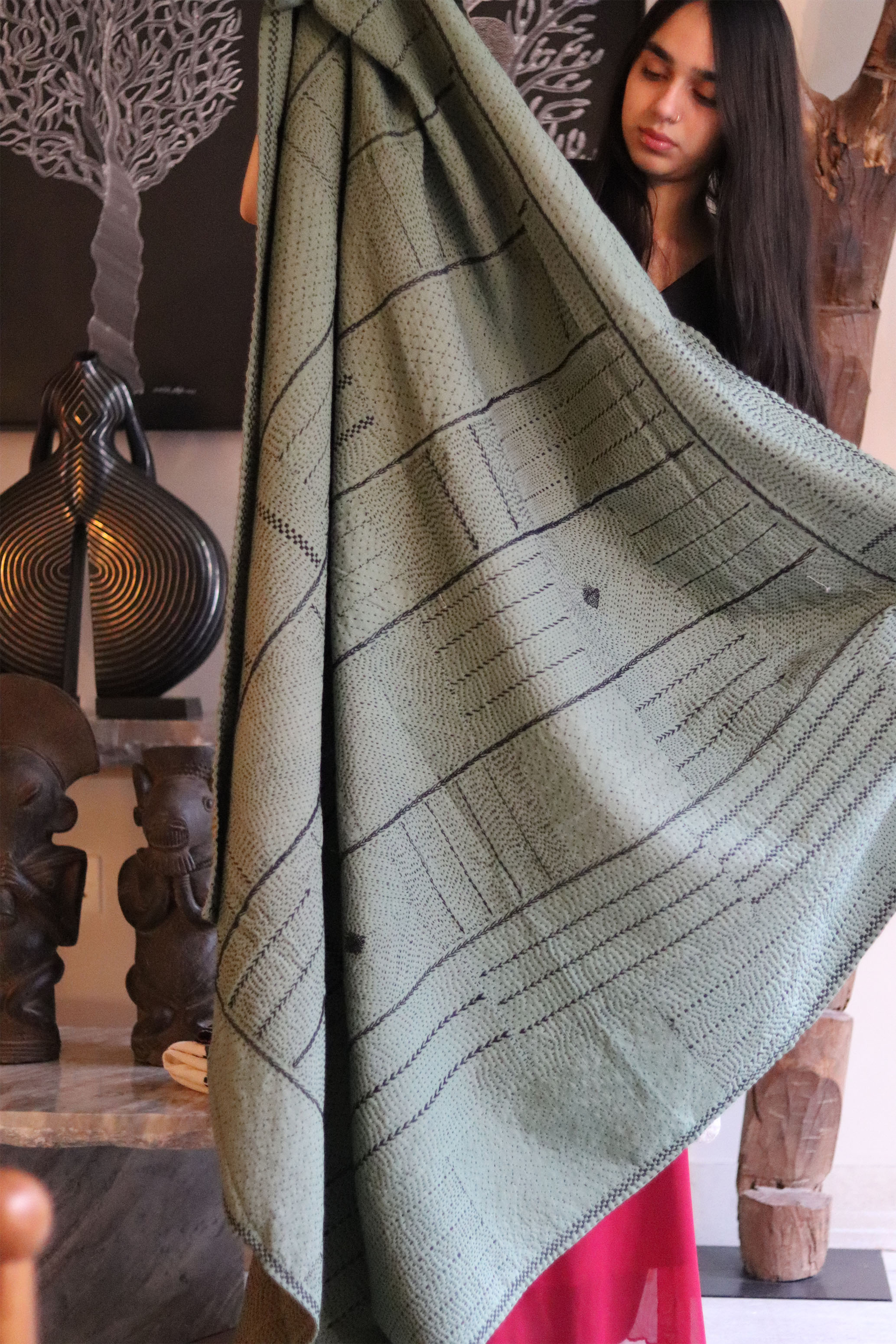 DOUBLE SIDED SILK KANTHA THROW